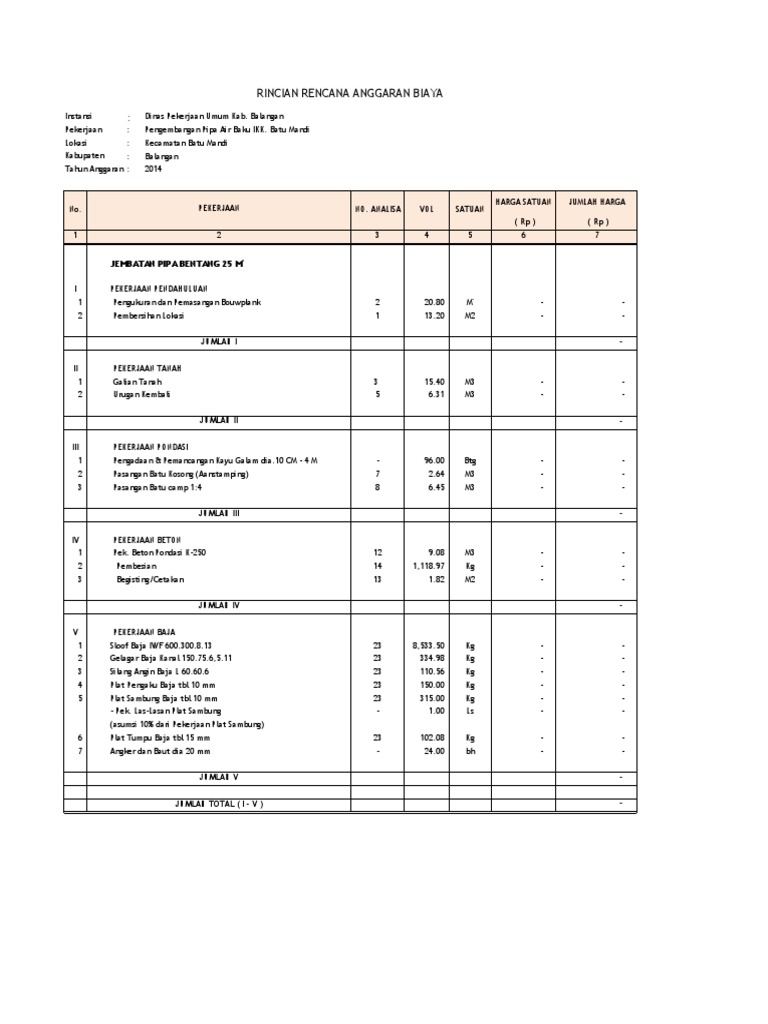 Rencana Anggaran Biaya Jembatan Docx Document from reader015.docslide.net Check spelling or type a new query. We did not find results for: Maybe you would like to learn more about one of these?