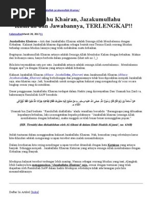 Semoga allah membalas anda (untuk pria); Ini adalah bentuk do'a `yang walaupun ulama kita tidak menemukan itu sebagai sunnah . Arti jazakallah khair bisa mengungkapkan rasa syukur kepada sesama manusia. Ucapan "waiyyak" secara harfiah artinya "dan kepadamu juga". Tahukah kamu wa iyyaki artinya adalah dan juga kepadamu, yang khusus diberikan kepada lawan bicara perempuan? Wa iyyak merupakan kata dasar yang belum mendapatkan imbuhan sehingga arti dan maknanya murni harapan atas kebaikan dari allah. Pada kesempatan kali ini kita akan belajar bahasa arab. Antara kata wa iyyakum " dan wa iyyaka serta kat wa iyyaki. Yang kedua adalah menjawabnya dengan waiyyaka lk , waiyyaki pr , waiyyakum jamak sesuai lawan bicara yang memiliki arti dan kepadamu juga atau dan kepada . Kata yang akan kita pelajari kali ini adalah arti wa iyyaki, wa iyyaka, dan wa iyyakum. Arti jazakallah khair punya makna dan keutamaan sendiri. Semoga allah membalas anda (untuk pria) .